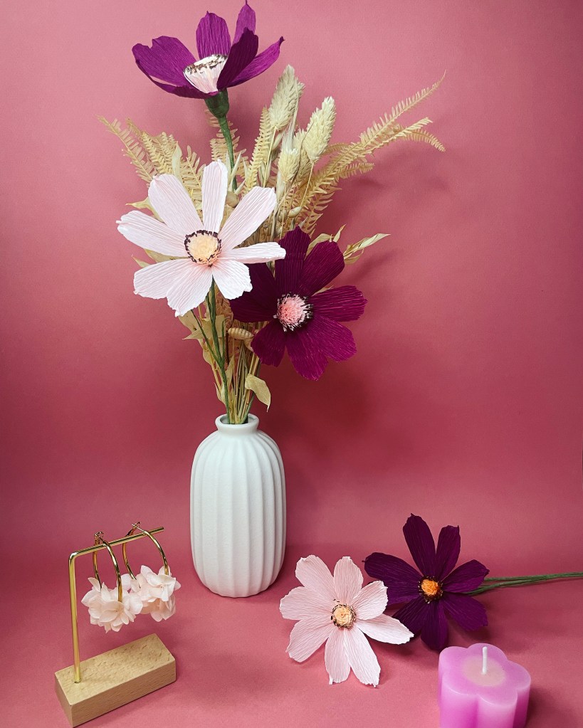 Vous aimez avoir des fleurs d’été en toute saison, alors optez pour le papier. Nos cosmos sont réalisés en France, à la main avec du papier de qualité fabriqué en Italie et certifié FSC1.